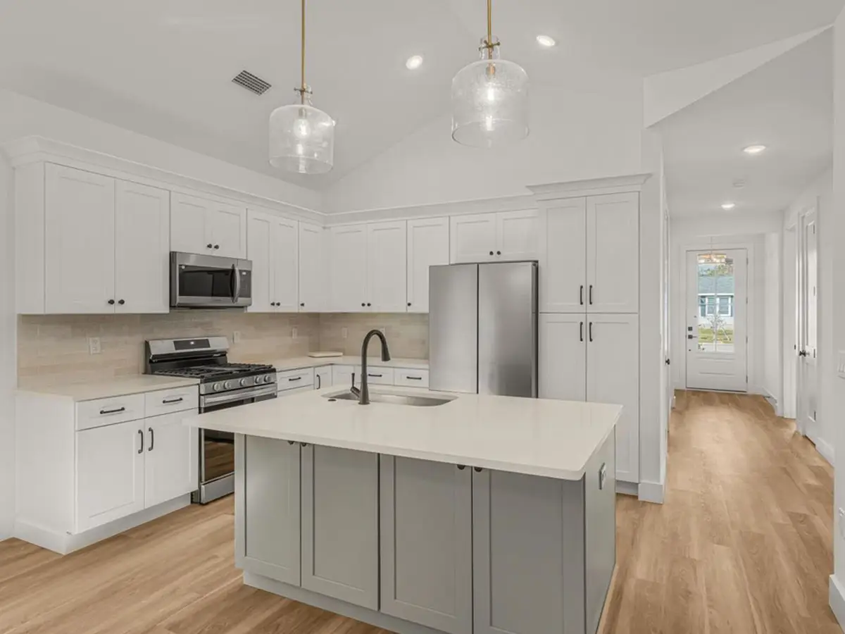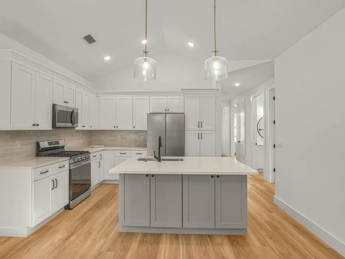 Completed in 2025, this 1,915 sqft new construction highlights Strobo Contracting’s commitment to residential excellence. The 3-bedroom, 2-bathroom home features an open-concept layout with premium hardwood and custom tile flooring. A signature 369 sqft designer kitchen serves as the home’s centerpiece, complemented by energy-efficient upgrades such as insulated walls, double-pane windows, and ridge venting.